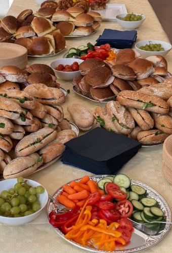Tijdens de pauzes konden de deelnemers genieten van een uitgebreide lunch en diverse extra versnaperingen, waaronder koek, mandarijnen, krentenbollen en bitterballen.
