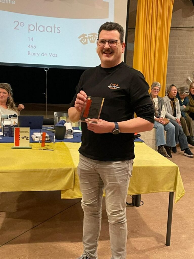 - Aanmoedigingsprijs: Eva, bij wie het ondanks meerdere mooie planken met wachtende spelen, het vandaag niet lukte deze af te maken. Haar prijs werd in ontvangst genomen door een clubgenoot.